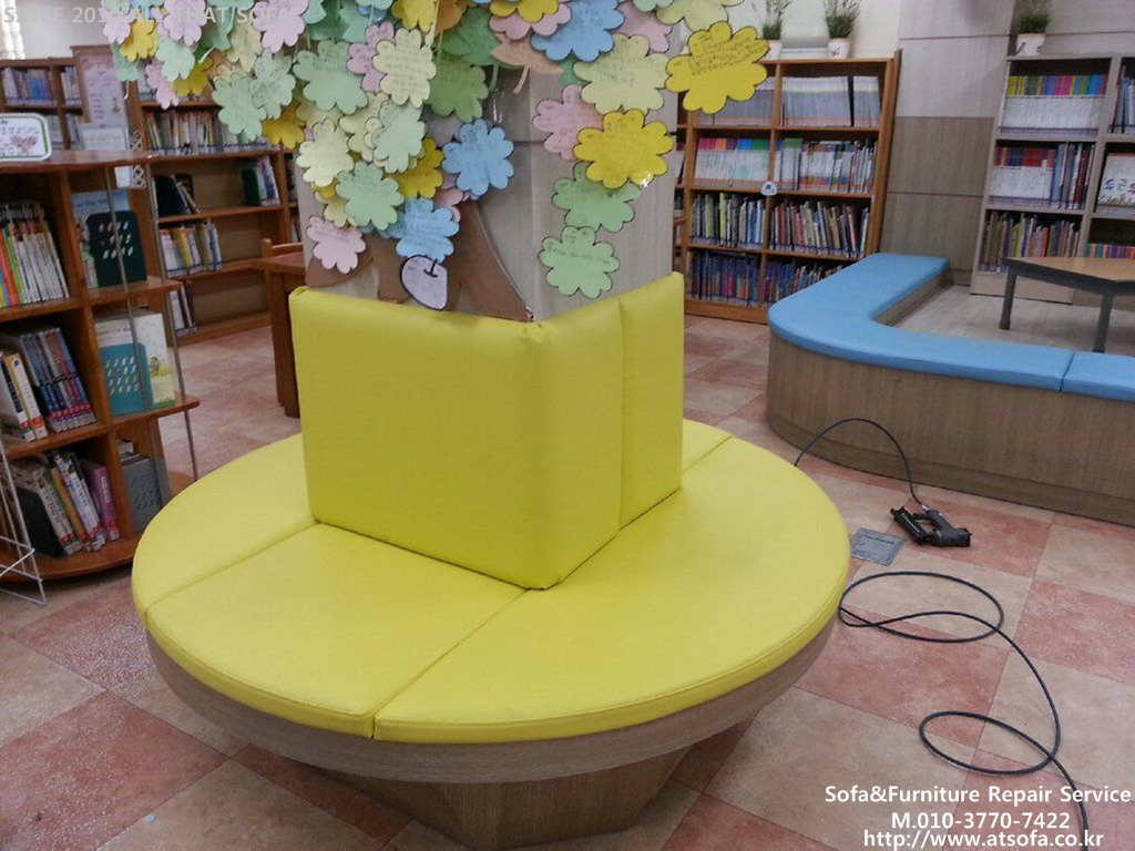 어린이들이 사용하는 곳이기 때문에 밝은톤의 색상의 인조가죽을 사용했습니다.^^